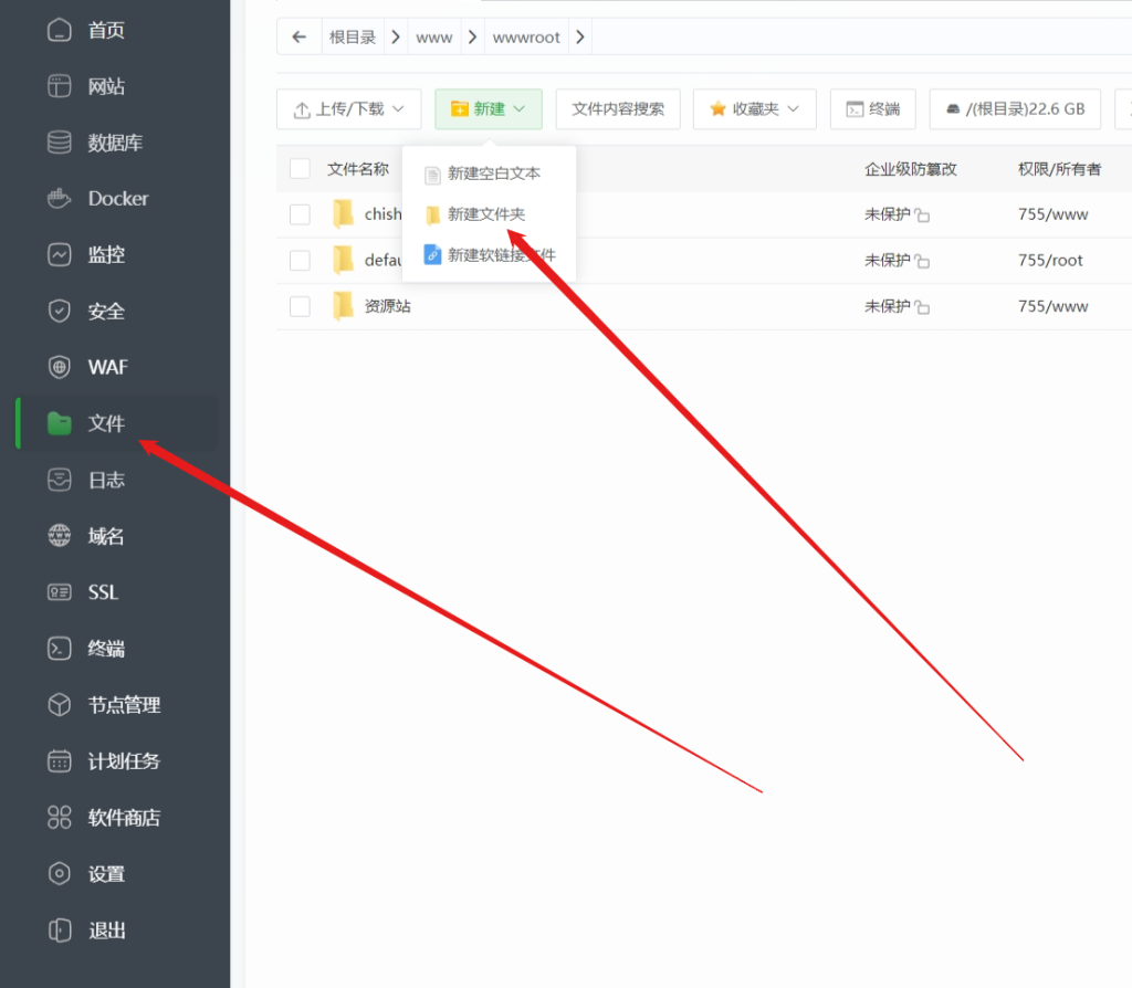 我们需要回到宝塔面板 左侧找到文件 后点击