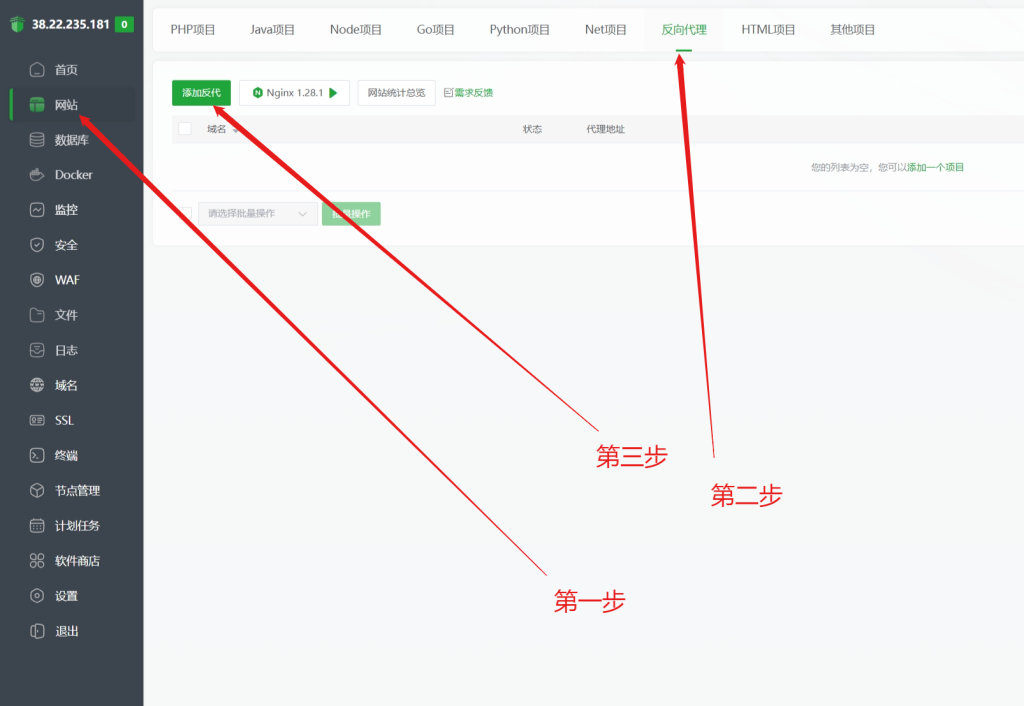 回到 宝塔面板 点击 左侧网站 反向代理