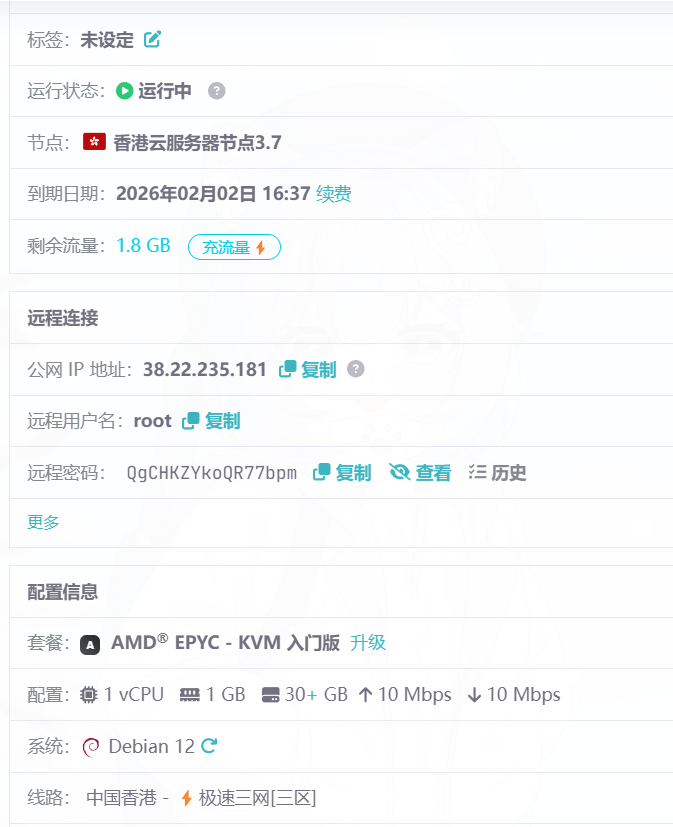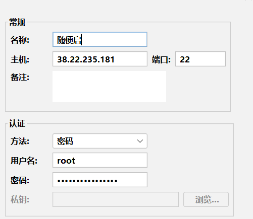 输入我们的服务器链接信息 在雨云中可以看见我们的连接信息 对应填进去就行了
