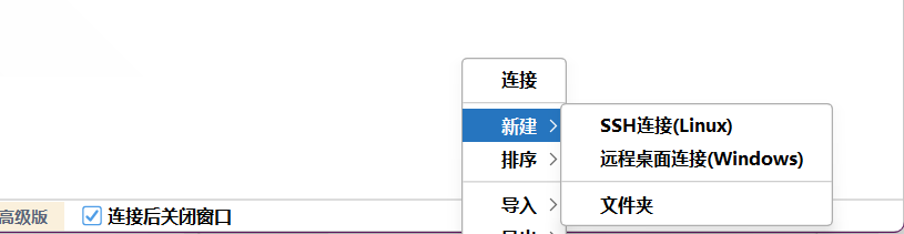 打开finalshell软件 右键空白处选择新建SSH连接