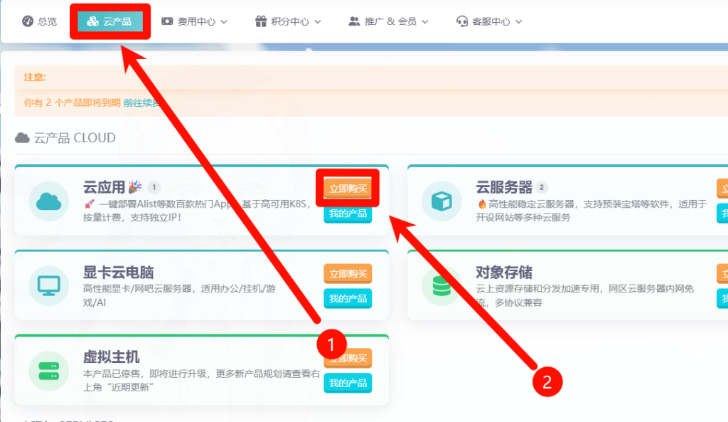 我们点击云产品 点击云应用
