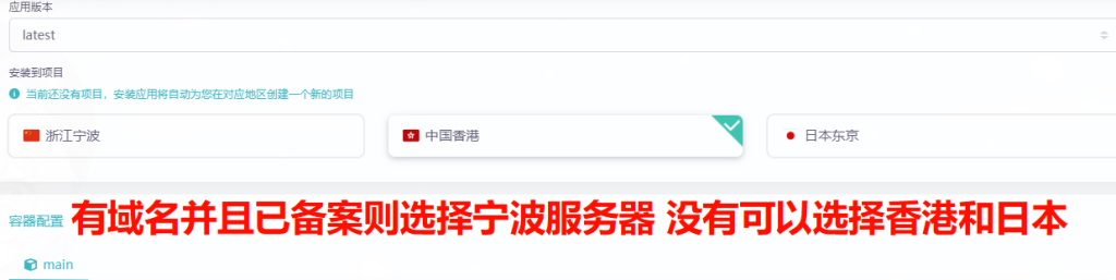 有域名并且已经备案的可以选择浙江宁波服务器 没有的话可以选香港以及日本服务器 这些都是免备案的